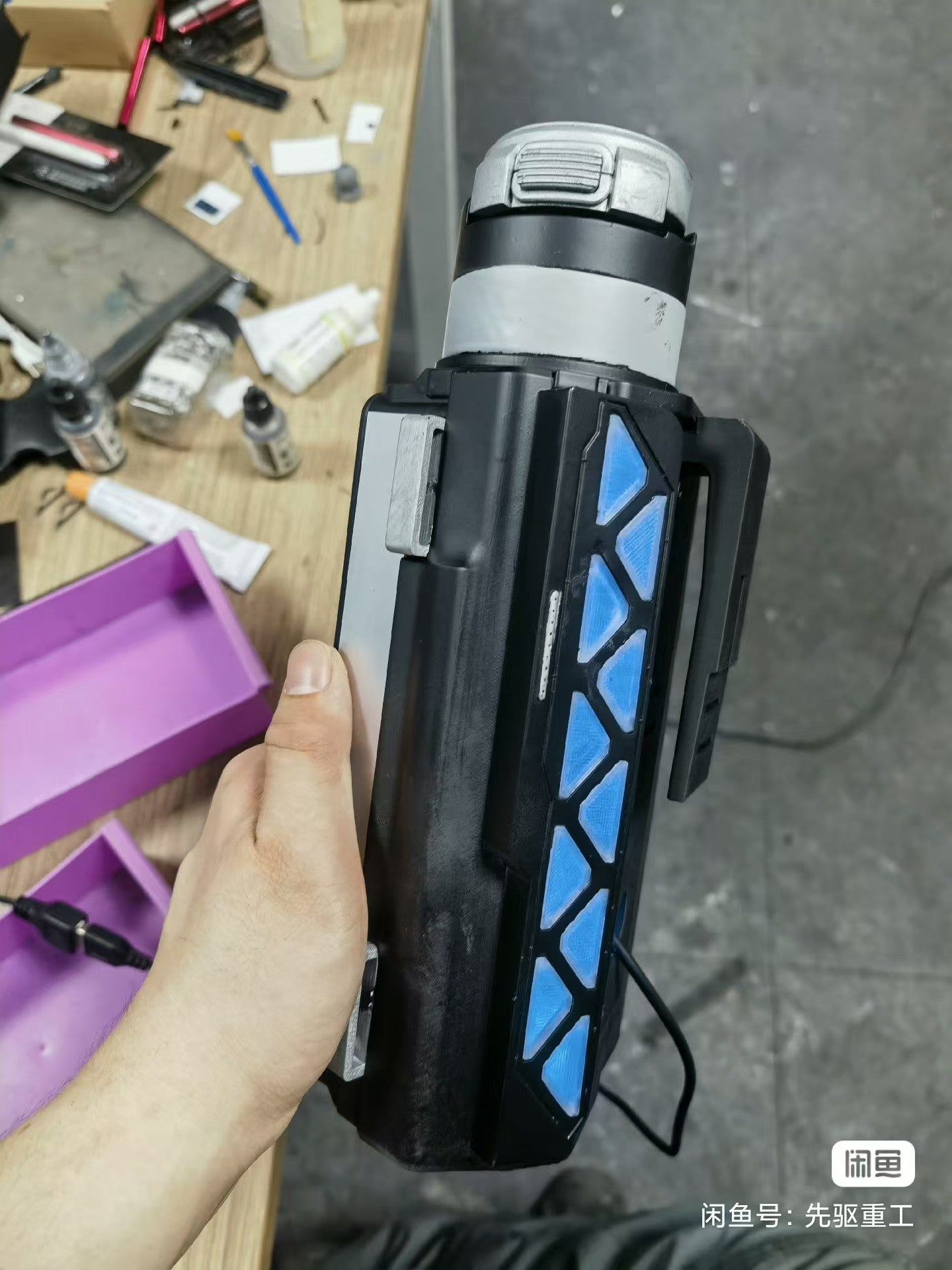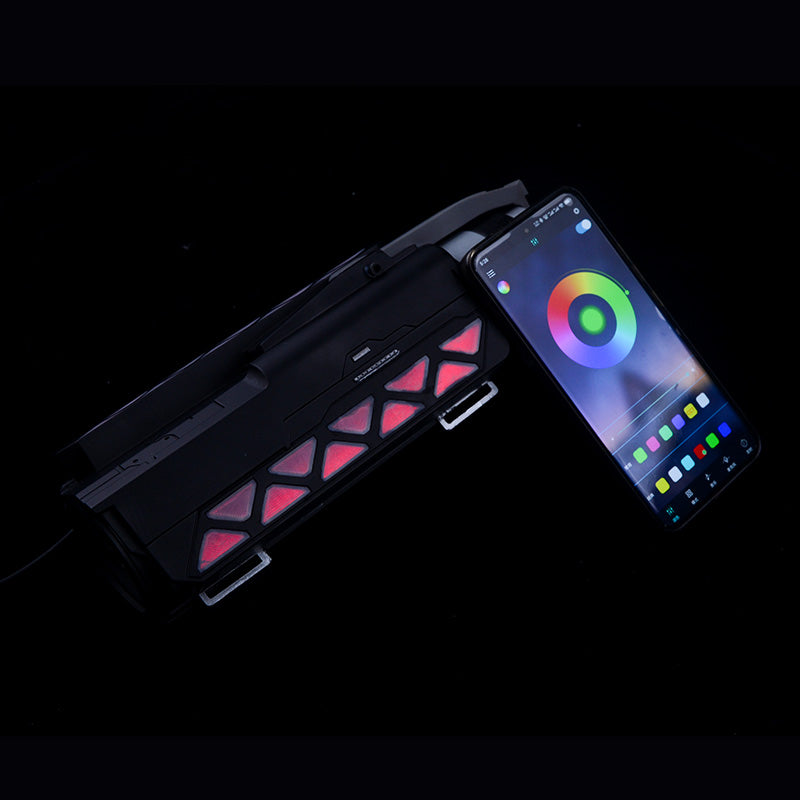 The magnetic hatch can open. Photopolymerization 3D printed model with RGB lighting, color change controlled via app.